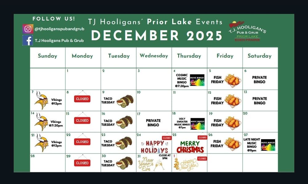 T.J. Hooligan's is Minnesota's home of Music Bingo. Music Bingo is free to play. Everyone gets a bingo card with song names in each box. We play 20-30 seconds of a song, you have to recognize the song and find it on your card. We play almost every Thursday at 7:30 pm and give out more than 15 prizes each night. It's something you really have to experience in person. We guarantee it will be the most fun you will have all week!